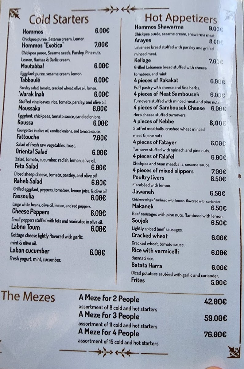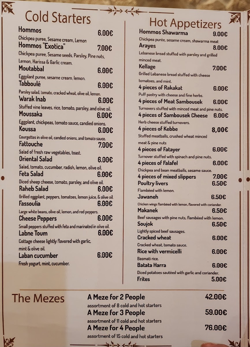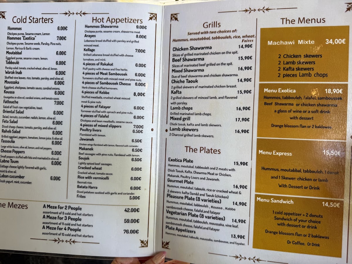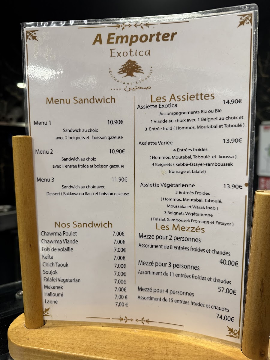 Exotica is a vibrant Lebanese and halal restaurant nestled in the heart of Paris, offering a rich palette of Mediterranean flavors. The menu masterfully blends traditional Lebanese dishes with fresh, aromatic ingredients, making it a haven for both meat lovers and vegetarians alike. Start your culinary journey with their cold entrées like the creamy Hommos Exotica, a delightful twist on classic chickpea purée infused with harissa and garlic cream, or the zesty Tabboulé bursting with parsley and lemon.